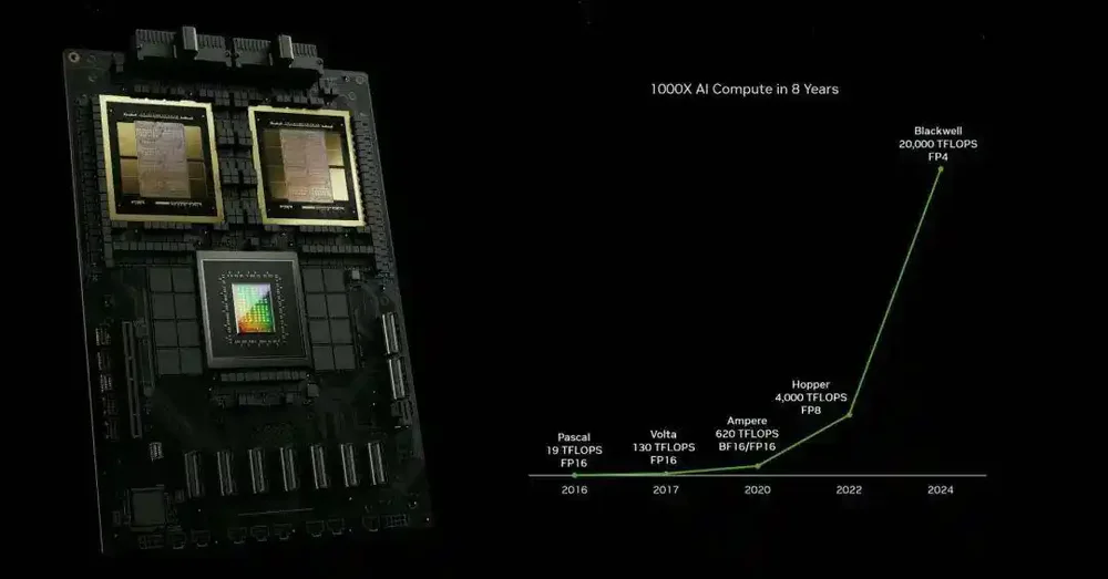 英伟达于2024年3月在GTC大会上推出新一代AI图形处理器芯片。(GPU)结构Blackwell,并且重磅发布选择GPU-B200和GB200产品类型。