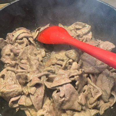 11、油一定要烧到烟,放在肝尖炒,不要炒太久会老的。