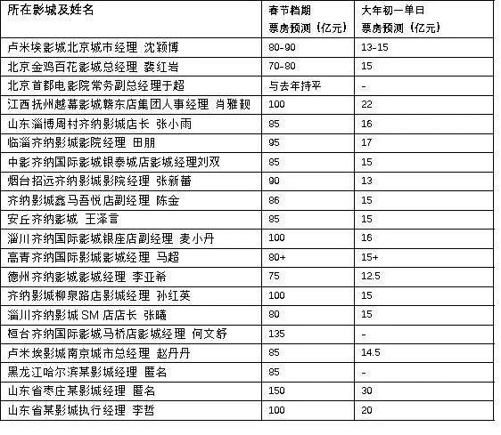 预购5亿元,20家影院经理预测春节档最畅销的电影?