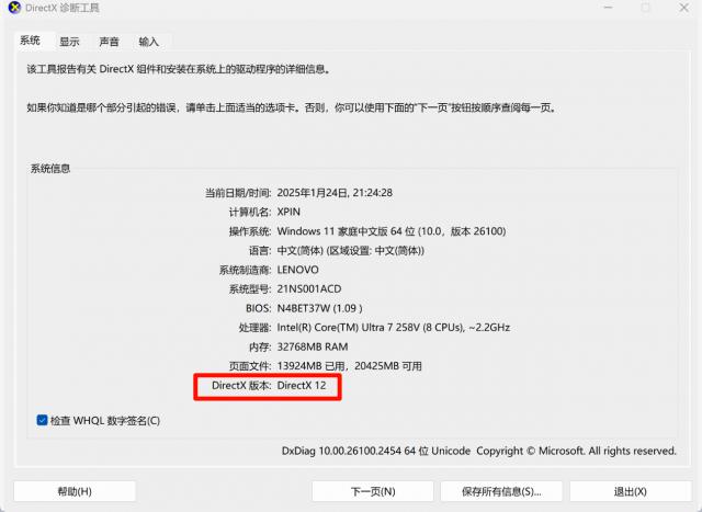 如果真的不放心,也可以自己查-用。 " Windows R " 键开启 " 运行 " ,然后在对话框中输入 " dxdiag " 启动 DirectX 诊断工具,在弹出的窗口里可以看到自己的 DirectX 版本。