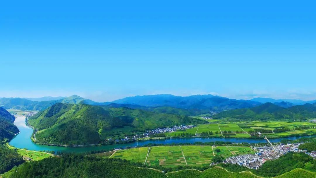 开化县金溪画廊诗画风景带金溪桃韵示范段。远远望去,这里既有山川之壮,又有田园般的温柔与宁静,就像上帝精心勾勒出的人间仙境。开化县委宣传部 供图
