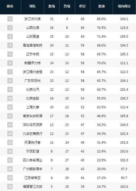 CBA第二阶段最终排名!辽宁第五广东第八,山东青岛四强,北京双雄差。