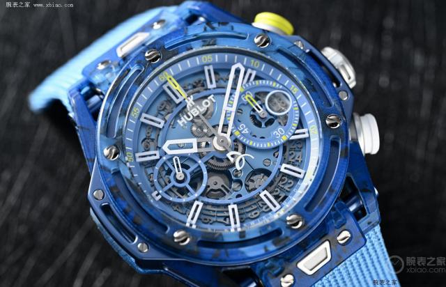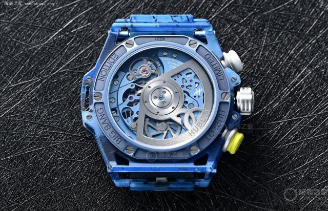 诺瓦克宇舶•特别版德约科维奇手表可以选择多种表带,如尼龙表带、弹性表带、橡胶表带和网球腕带,其中组合弹性表带只重。 49.5 克。这个作品搭载的 HUB 1280 飞回计时机芯,用浅蓝色阳极氧化夹板,呼应手表的主色调。得益于材料的优点,重量比黄铜低。 27%。