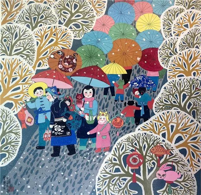 笔走银蛇书的妙韵,妙剪窗花的祝福,灵蛇灯的魅力,巧制方糕迎接春节...作品中既有传统民俗,也有民间故事。窗花、风筝、刺绣、灯笼、糖画中出现了生动的蛇元素。意境丰富的画面构图和五颜六色的色彩组合呈现出生动的“蛇舞春节”杰作。