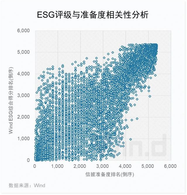 但是也要注意的是,Wind ESG 评级引入了许多支持评级结果的第三方另类数据源,上市公司主动信披数据仅占比。 Wind ESG 评级权重的 50%-60%(因行业差异而异),ESG 如果报告写得好,可能得不到更好的评级结果。从这个角度可以看出,信披准备度的尾部仍然有大量的上市公司沉淀,他们对 ESG 还处在觉醒甚至怀疑的时期;大量的腰部上市公司,有些可能已经做了相当多的工作。 ESG 工作,但是公布的观念仍然缺乏,另外一部分可能是 ESG 关于工作做得少,但是信披却走在了前面,也就是常说的“漂绿”。