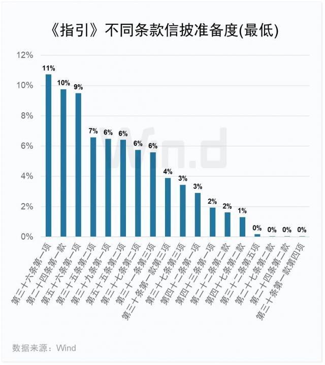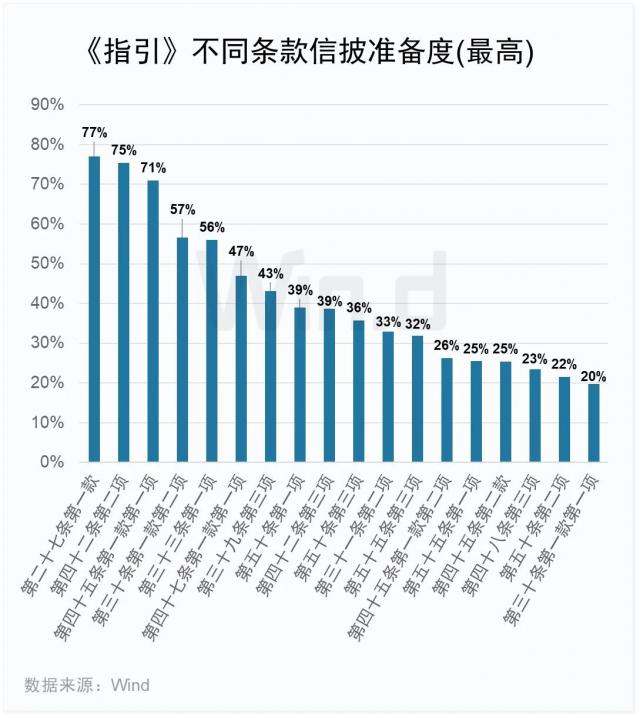 从更具体的条款层面来看,“第二十七条第一款”、“第四十二条第二项”、“第四十五条第一款第一款”三条的信披准备程度最高,已超过第一款。 70%,但不同条款的信披准备程度差异较大,部分条款的信披准备程度不足。 1%,所有条款的平均信披准备程度如何? 21.32%。