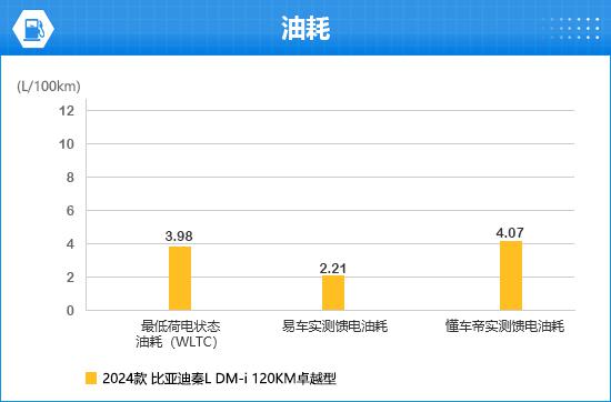 根据工业和信息化部的申报信息和各大汽车垂直媒体的测试数据,2024 款比亚迪秦 L 官方公布的 WLTC 最低荷电状态下的油耗为 3.98L/100km;易车实测馈电油耗为 2.21L/100km,懂车帝实测馈电油耗为 4.07L/100km(以上数据仅供参考)。