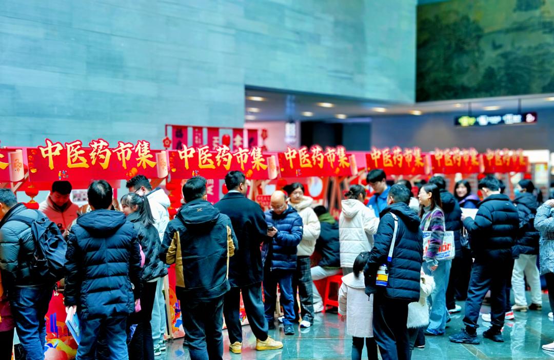 在中医市场的各个摊位前,人群熙熙攘攘。