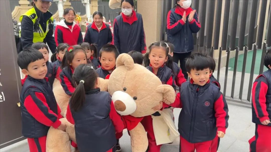“孩子们,你们看谁回来了?”“啊,是大熊!”虽然娃娃熊没有生命,但它在孩子们心中充满了分量。看到警察姐姐抱着大熊下了警车,孩子们上前拥抱大熊,七手八脚地把它抬进了校门。