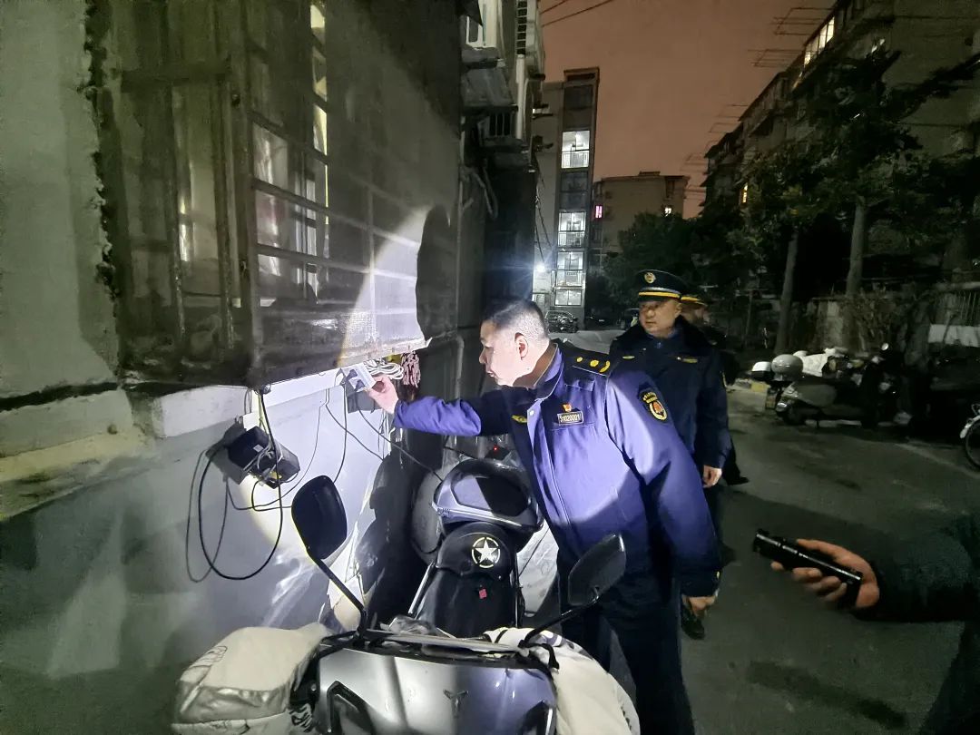 近日,静安区城管执法局对14个居民小区进行了电动自行车充电安全夜间执法检查。