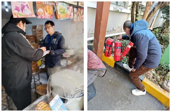 石门二路街道检查辖区内商业建筑、沿街商铺等场所新建限额以下的小型建设项目,重点关注施工现场的临电、高空作业和消防安全,要求文明施工,在萌芽阶段消除隐患风险,牢牢守住安全底线。