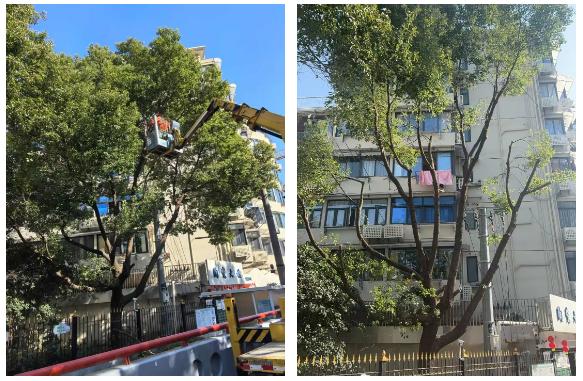 北站街道城市运输中心在安全检查过程中,发现光复路乌镇路口(陶瓷建筑周边)树木生长过高,与电线交织,存在一定的安全隐患。城市运输中心积极联系相关部门,组成联合整治团队,绿化工作人员负责树木修剪,电力技术人员负责现场指导,确保配电设备在修剪过程中不损坏电线,安全运行。