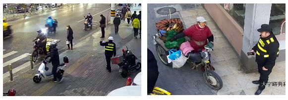依托网格化,大宁路街道城运中心在线巡查 “线下控制”的工作模式,在线,24小时不间断的巡逻。一旦发现移动摊贩非法占用道路,视频检查员会立即记录信息,并立即联系街道市容服务队进行现场处理;线下,工作人员迅速响应,通过劝导,现场普及摊贩的法律法规,讲解辖区内的管理规范。建议离开并与商贩一起清理路面卫生,保持公共环境干净整洁。