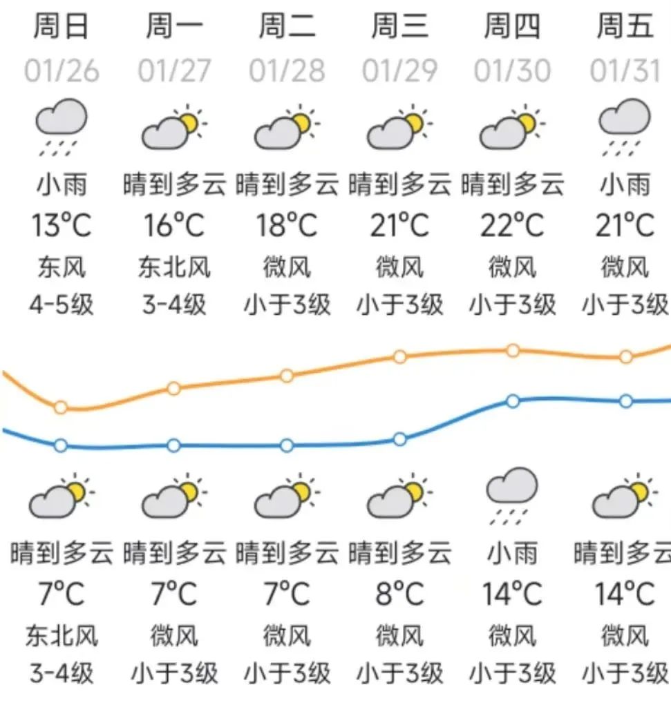 预计春节前,强冷空气进入耳朵,假期天气普遍稳定。1月26日至29日(腊月27日至第一天),强冷空气带来强风降温,日平均气温降低7。~9℃,最低温度约为6℃(出现在29日上午);