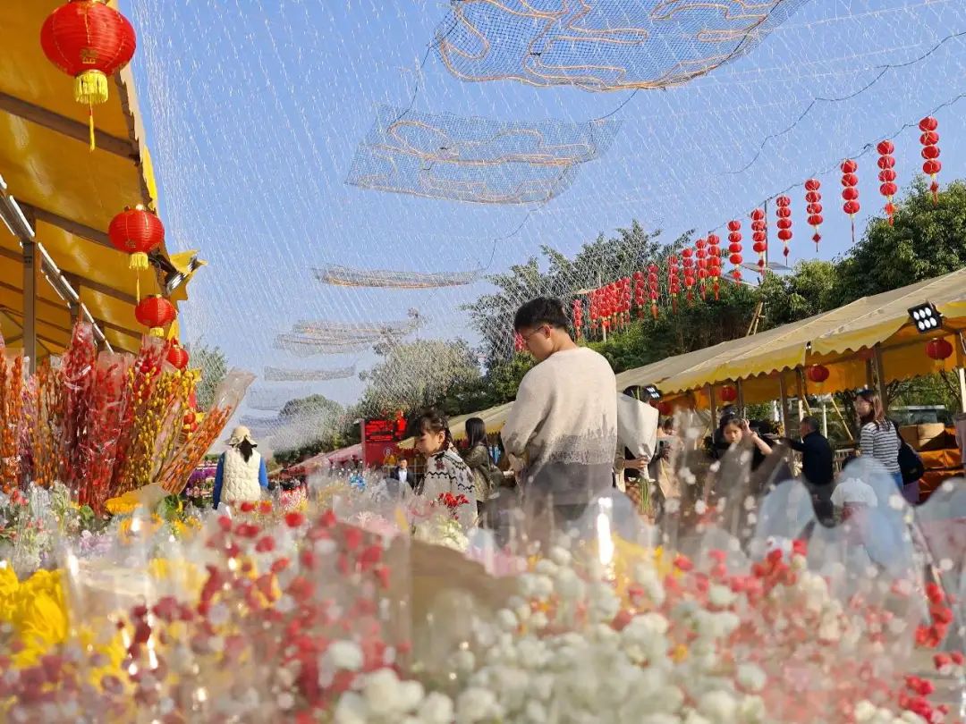 1月25日至1月29日(除夕),天河迎春花市于2025年在奥体优托邦南侧举行。 以盛世同庆为主题,开启持续了4天的春节嘉年华。现场有专场对口帮扶表演、非物质文化遗产展示、汉婚习俗演绎等。,花市有246个档位。乘坐第十五届全运会的“东风”,为市民带来了传统与现代、花卉与文化相结合的盛宴。
