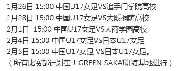 北京时间 1 月 26 日本,《今晚报》记者王梓报道,中国 U17 女子国家队现在正在日本拉练,从今天开始, 11 日内经历了五场友谊赛,包括两场对日本的比赛。 U17 女子足球队,届时姑娘们将采取实战训练测试迎战结果。