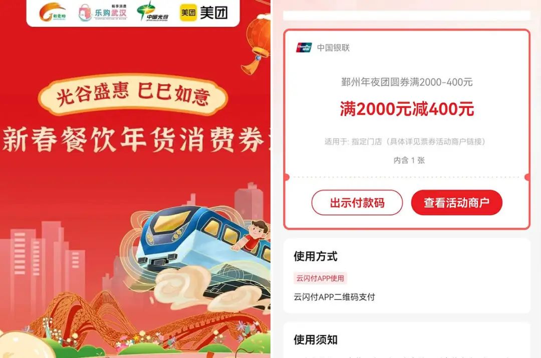 比如湖北武汉,新年消费季开始,优惠券发放超过1亿元,其中“惠购湖北”零售餐饮优惠券2800万元,政府餐饮优惠券200万元,线上平台餐饮优惠券3000万元。多平台、多场景带来了实实在在的折扣。