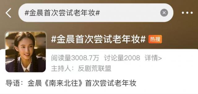 金晨在《南来北往》中也呈现了角色的老年阶段。当时他还做了一个“第一次尝试老年妆”的热搜。但是,作为一个被第二个女人举桌的专业户,这一举动确实相当于在太平洋打了一个鸡蛋,说要求人类喝蛋花汤,没人在意。