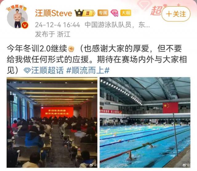 去年 12 月亮,汪顺曾经发过一条信息,"每个人都不要以任何方式支持我。期望能在赛场内外支持身边的朋友见面。”