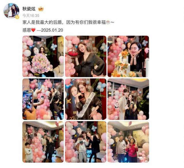 秋瓷炫配文:家人是我最大的后盾,因为有你我很高兴,很感激。