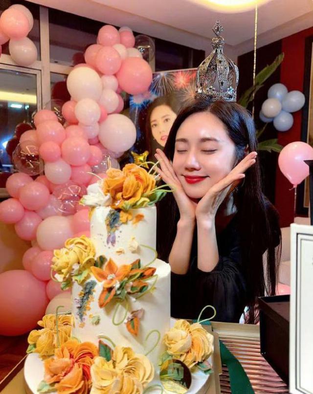 此外,她的家人还专门为她定制了一张照片海报,并为她准备了一个巨大的蛋糕。蛋糕上装饰着奶油做的花,精致美丽,让人看了之后非常开胃。