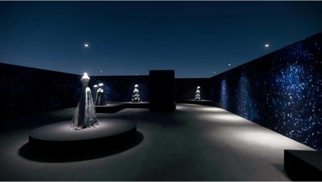 这个展览分为几个部分 4 展区分别是四个主题:星光之夜、有时花园、梦幻镜河和未知。这些展区灵感来自高定艺术家的创作背景,他们通过华丽的高定礼服来诠释作品背后充满活力的创作故事。