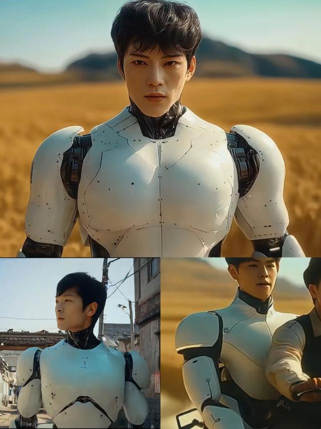 在这三个场景的转换中,虽然人物主体保持了一致,但都是人脸。 男性机器人以白色机械为主体,但无论是面部细节还是白色人体结构,三个场景都可以清晰地看到是三个完全不同的“角色”。