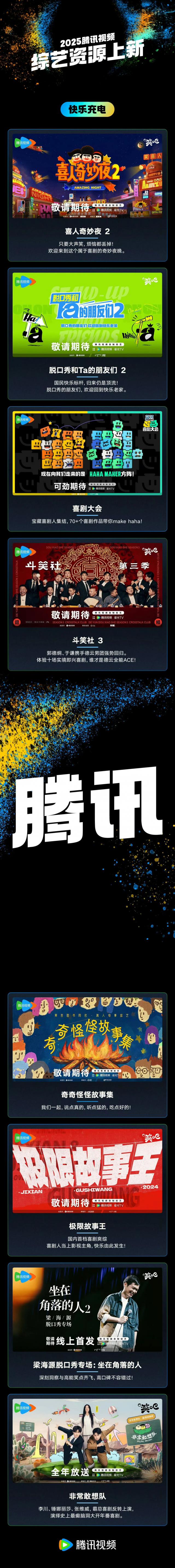 这个滑了好几页的节目单,喜剧跑道配备直接打满了。鹅厂在自己的统治区确实是无敌的,自己的家人看了也走不出去。