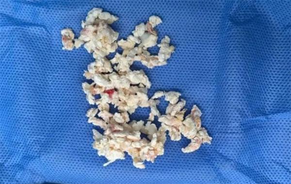 经精心清理,共取出。 30 其余的痛风石,其中最大的一个直径惊人地接近 3 厘米。