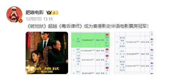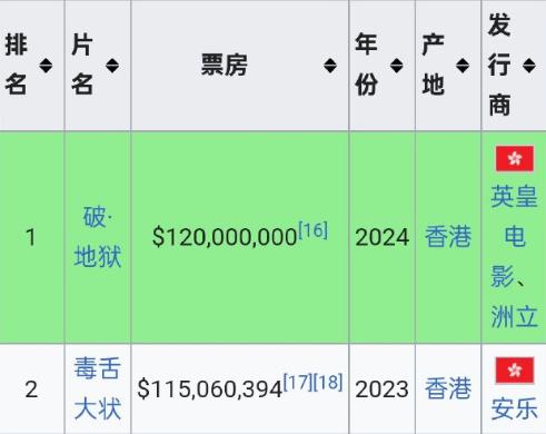1.2 亿港币成就,刷新了香港影史中国电影票房纪录。