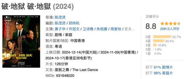豆瓣8.8分数,仅次于《好东西》,与《出走的决心》并列今年豆瓣华语高分榜第二。