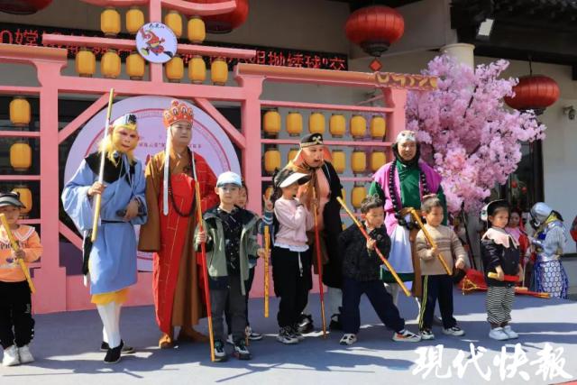 “过来看看,过来看看。我想和猪八戒合影。”“那里有金角王和银角王,真的很像。”来自山东日照的孩子吴思睿兴奋地告诉了妈妈。清明假期恰逢“花果山之春”赏花节,游客们与西游人物进行了精彩的互动,获得了阵阵笑声。