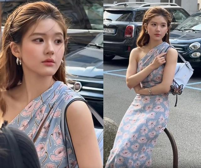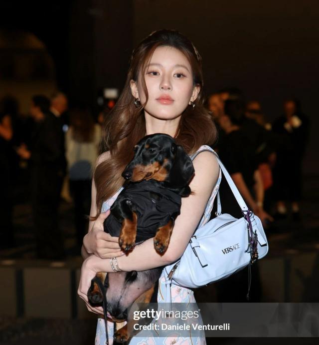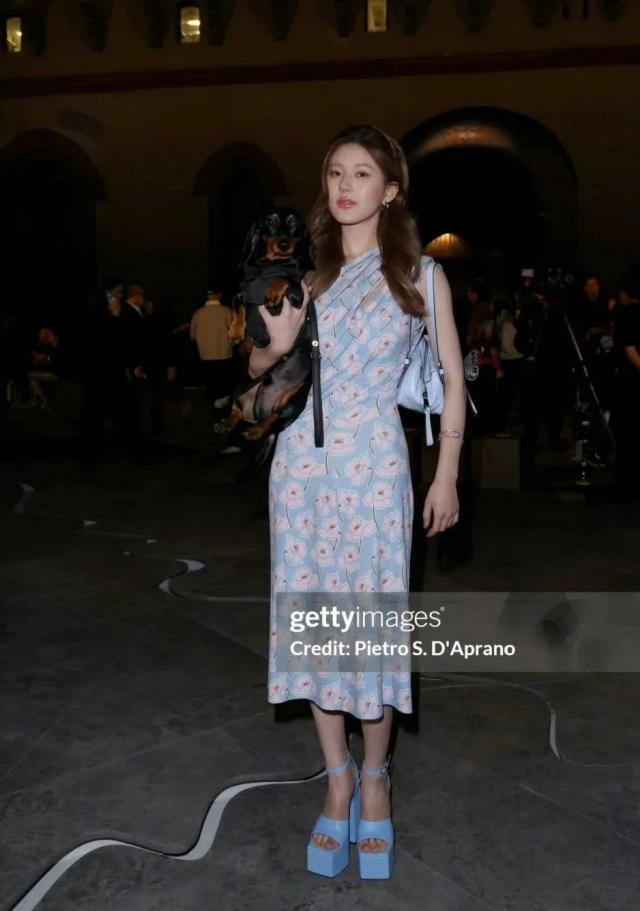 米兰时装周时隔一年的赵露思,这次带着她的小狗去看节目。她穿着一件蓝色碎花斜肩连衣裙,穿着浅蓝色厚底高跟鞋,颇具节日魅力。