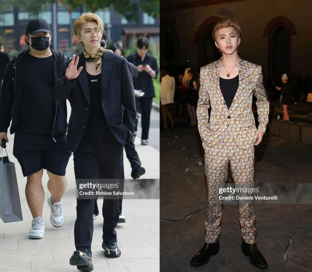 蔡徐坤已经从顶流位置滑落,但仍然没有被品牌放弃。他在时装周上换了两套衣服,一套是黑色休闲西装和运动鞋,一套是纹路西装。离开修图师和美颜滤镜后,很难判断这两套是像时尚儿子还是发廊。 Tony。
