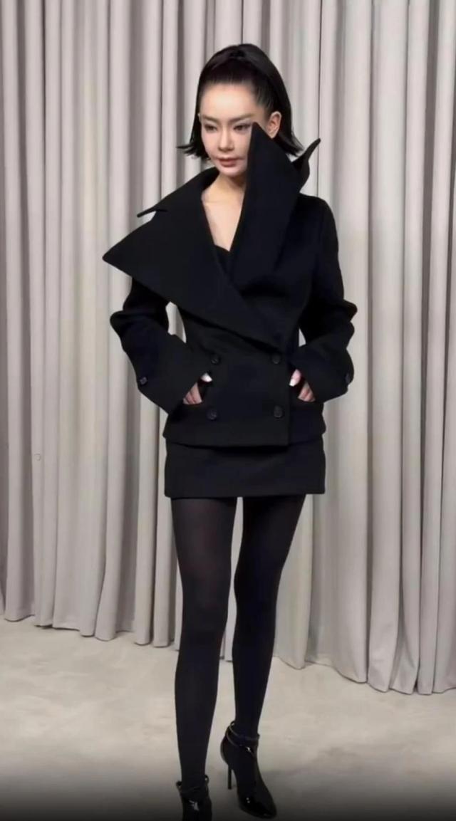 勇于尝试不同风格的戚薇,这次在米兰时装周上穿了一件黑色连衣裙,立体剪裁的外套搭配猛勒的头皮发型。不知道这个造型是走在时尚前沿还是跑出了时尚界?