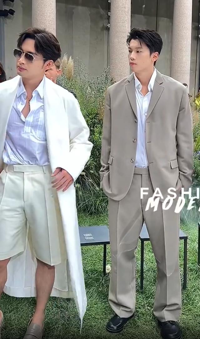 张彬彬和服役游泳运动员汪顺出现在同一个品牌节目中,两人都穿着休闲套装,其中张彬彬穿着白色长外套搭配西装短裤,汪顺穿着浅灰色休闲套装。如果身高不够的人穿这两套衣服,效果估计会相当不错。幸运的是,他们足够高。