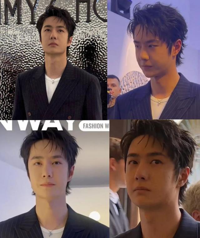 王一博明明很瘦,但是不知道为什么生图中的脸总是有点水肿,总之,他在这次时装展上拍到的生图都不太好看。