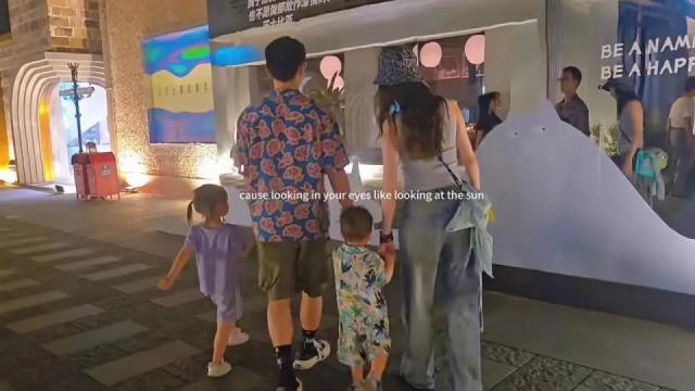 9 月 16 日本,苗苗曾经分享过一家四口的照片,两人拉着孩子非常温暖。