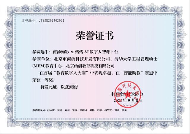 商汤如影 X 熠熠 AI 第一届“教育数字人比赛”获得数字人智课平台 - “智能助教”跑道一等奖