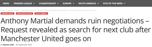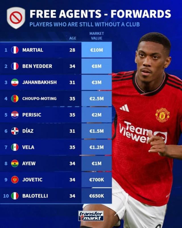 曼联前峰、法国妖王马夏尔在自由面前,至今未找到新主人。