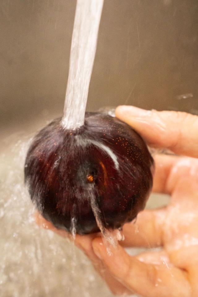 如果是刚买回来的新鲜无花果,吃之前还有一个小水果。 tips,那就是把它拍扁。有人说拍扁再吃它糖分会更均匀,但颜值必须受到影响。个人感觉无花果还是和其它食物搭配起来味道比较好,直接吃有点腻。