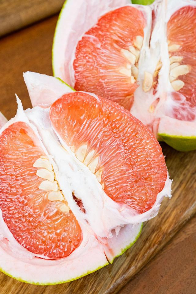 并且吃起来一点也不像普通柚子那样苦,果实十分鲜嫩,甜得让人上头,当然价格也比普通柚子贵很多。