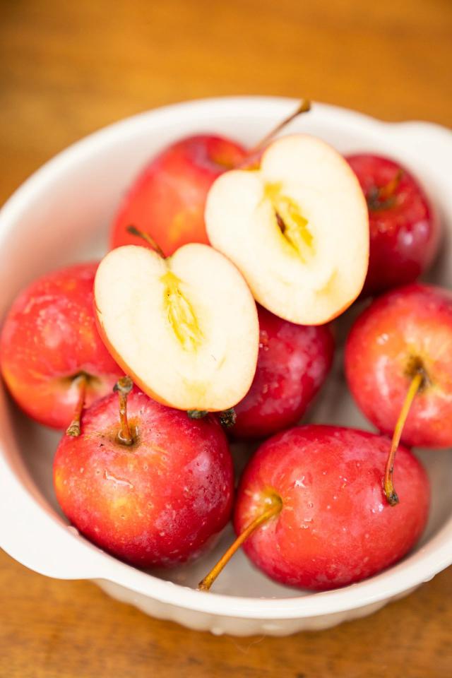 海棠果看上去很像mini 版的苹果,颜色更红润,甜度似乎浓缩了。就连不喜欢苹果的天团朋友咬了一口也被圈起来了,其实是这样的。香甜鲜嫩。