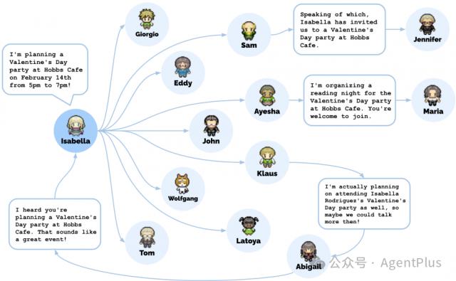 端到端评估:在端到端评估中,论文被观察到 25 一个代理人在两天内自发行为。资料表明,代理商之间形成了信息传递、关系建立和协调。具体而言,有关 Sam 市长竞选的信息传递范围从 1 人类(4%)增加到 8 关于人类(32%) Isabella 从情人节派对的信息传递范围来看 1 人类(4%)增加到 13 人(52%)。