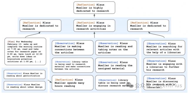 反思:其次,论文引入了反思的概念,这是代理商定期生成的更先进的思维。反思是通过查询最新的记忆记录,从语言模型中获得相关的记忆来生成的。