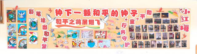 另外,各学段的学生紧跟主题做黑板报,比如低年级的“种下一颗和平种子”、中年级的“知历史颂和平”和高年级的“不要忘记国耻,梦想中华”,黑板报构成了校园里缓缓展开的和平画轴。
