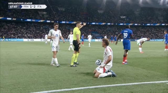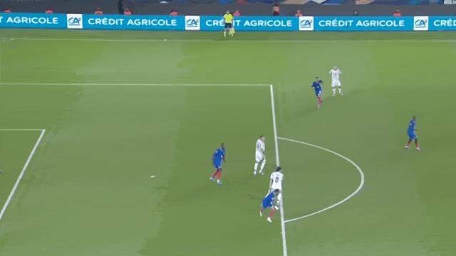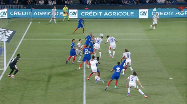 第 39 几分钟,法国队前场进攻,巴尔科拉雷区在线拿球,多纳鲁马没有反应,但不幸的是,他们最终稍微偏离了远端立柱。最后半场结束,两队暂时战成。 1:1 的平手。
