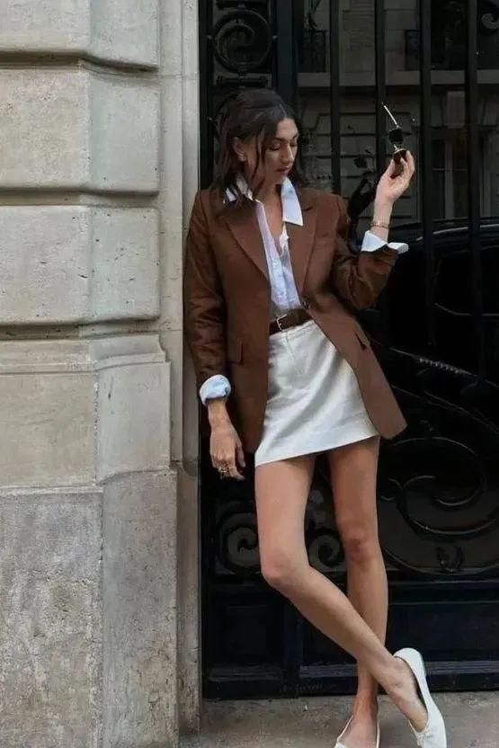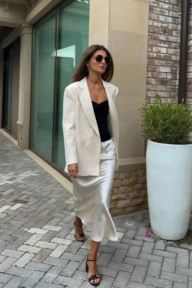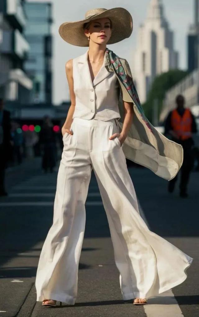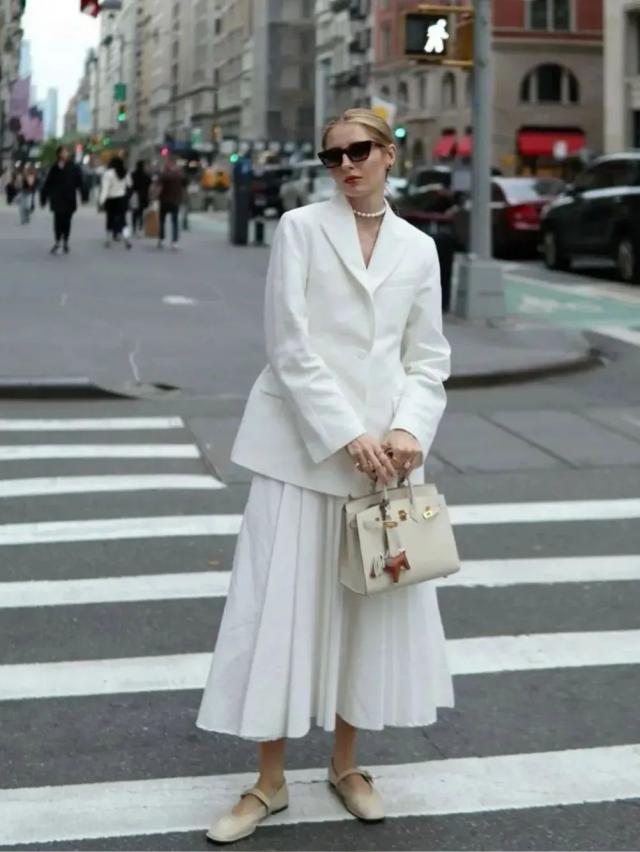 这种组合不需要繁琐的装饰,就足以展现女性的优雅和自信。