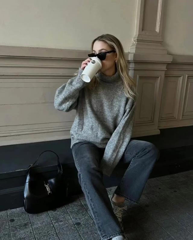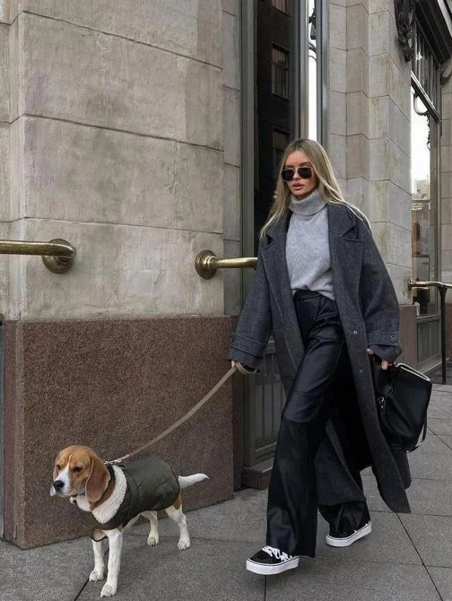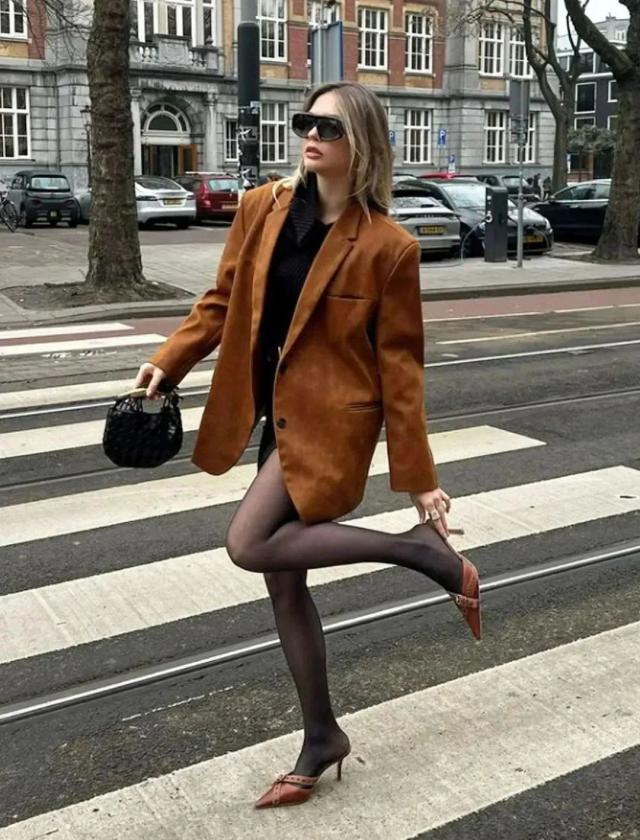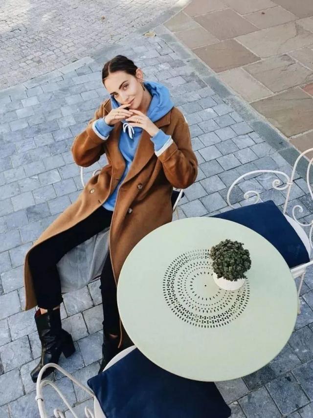 选一件质地上乘的焦糖色呢子外套,既保暖又能为整个造型增添一丝亮色。