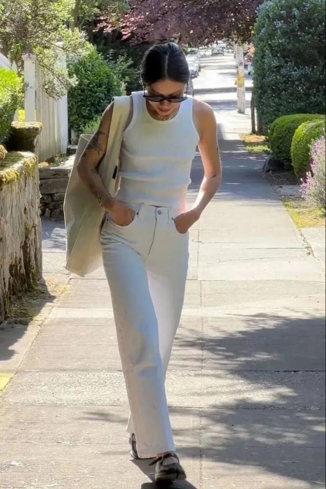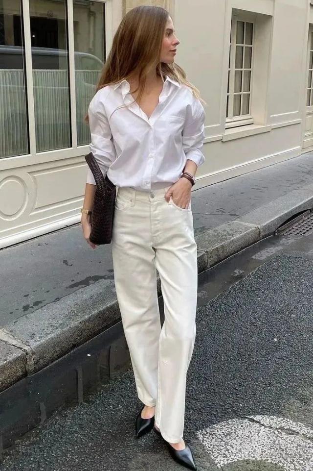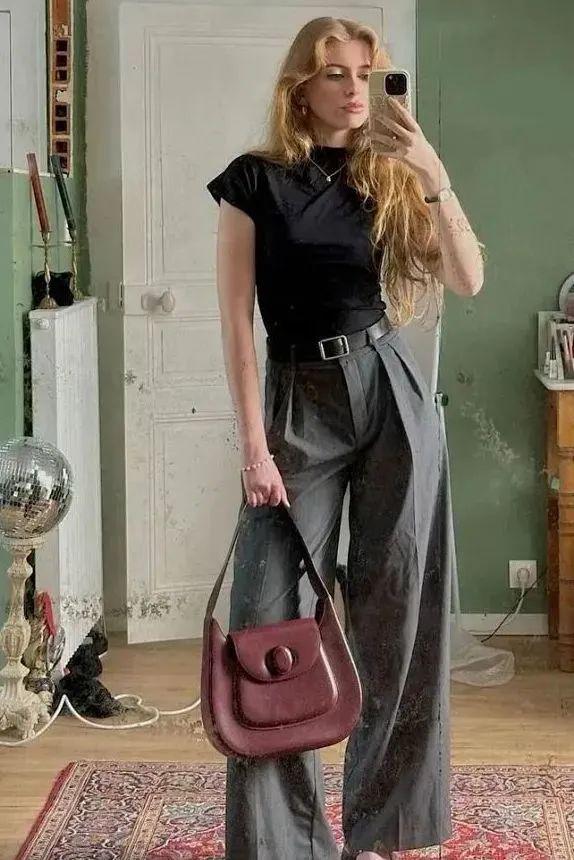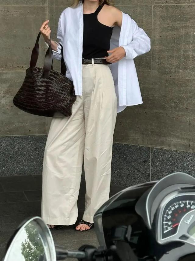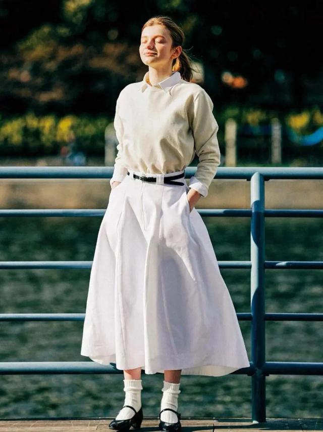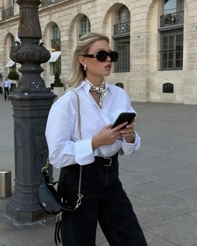 一件白色上衣,搭配一条黑色腰带,既凸显了腰线,又增添了时尚感。
